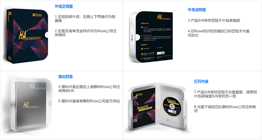 2024年5月1日,Rose第六代RoseHA v12.0正式发布,包装已统一更新,请用户在购买前参照正版包装,以确保您的合法权益。如果包装和以下图片不同,即为盗版假货,可联系我司进行正版鉴别:
