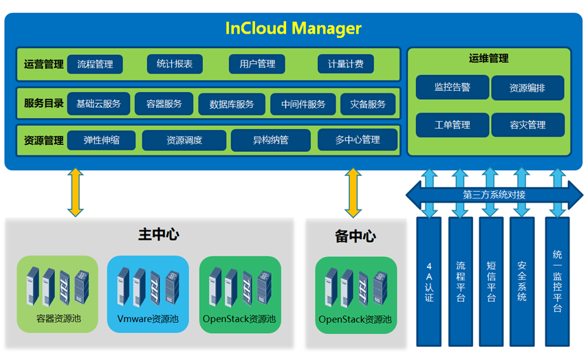 云管理平台InCloud Manager是云数据中心管理平台,面向私有云和混合云市场,提供开放、安全的企业级云数据中心运维管理能力。提供自底向上的全栈资源池管理和服务门户,满足企业级客户对多云、异构、服务目录、运维运营等需求,打造云、数、智一体化的云管理平台解决方案。帮助企业加速云的应用,实现业务的动态变更,资源的智能管理和服务的自动化交付。