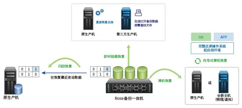备份一体机Rose备份一体机是集勒索感知、实时备份/定时备份、数据恢复、业务恢复、容灾演练于一体的企业级数据备份解决方案,为物理机、云主机、虚拟机等环境提供统一集中的全面数据保护。