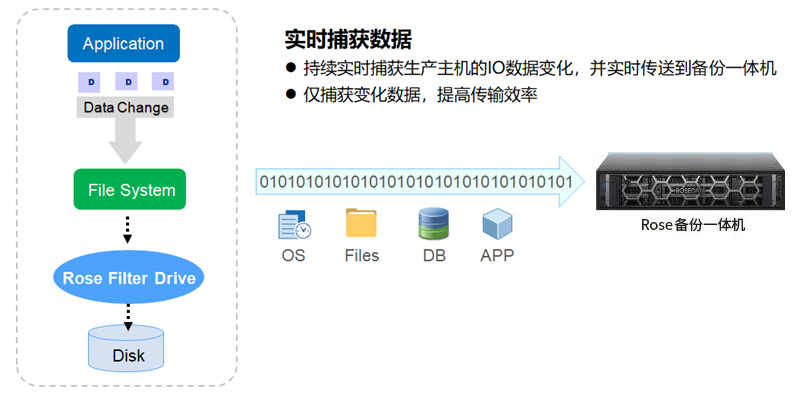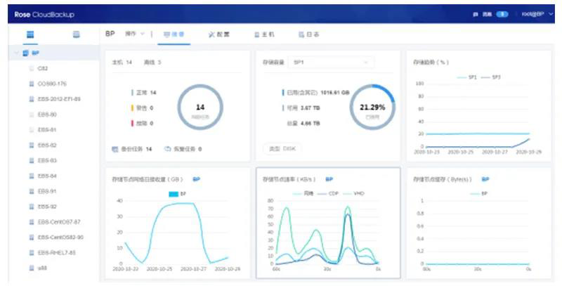 业务系统在线运行,Rose备份一体机实现对操作系统、应用程序、数据库等数据的整机实时备份(也可设置定时备份)。支持物理机、虚拟机/超融合、私有云/公有云等硬件场景,可以轻松实现多平台多数据的集中备份、集中管理。用户只需勾选需要备份的主机和磁盘,即可轻松完成对核心数据的全面数据保护。