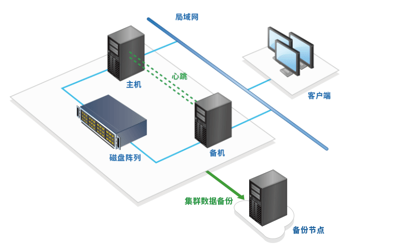 通过共享外接磁盘阵列,来实现数据的一致性和连续性。当故障发生时,业务自动切换到备机,保障业务的不间断运营。同时新增数据远程灾备节点,以保障核心数据的安全可靠。