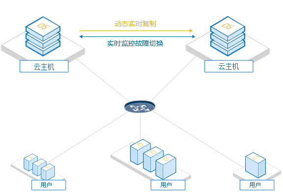 在云端的主机之间做高可用。在按需分配的基础上,通过云端与云端的灾备,既可大大节省建立多个专有灾备中心的费用,如相关的硬件、软件、电力、冷却以及管理等的费用,又可享受海量存储和高性能云计算的服务。支持不同的云。