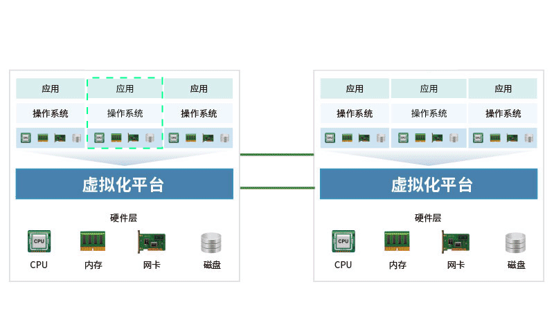 •深度监控虚拟机CPU/内存资源,实时监控虚机内部应用运行状态,双实例机制避免虚拟机实例单点故障,无缝构建虚拟化热备方案。