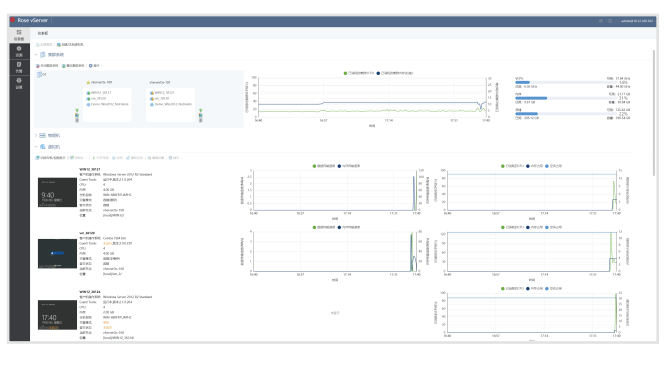 友好的向导配置方式, 轻松创建并配置RosevServer容错集群、 虚拟机、 网络和存储。 全面的系统性能监控和状态报告, 实时查看物理宿主机、 虚拟机资源使用情况及预警。 当Rose vServer容错平台监测到性能告警或者故障时, 将主动修复或隔离并报警, 自动通过电子邮件和SNMP的方式通知系统管理员及用户。